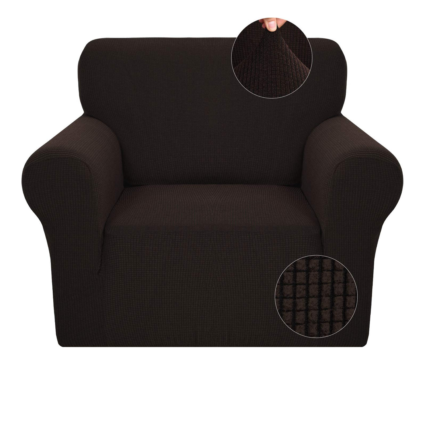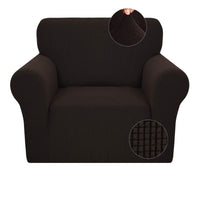 Jiviner Super Stretch Chair Slipcovers With Arms 1-Piece Jacquard Small Checks Living Room Armchair Covers Soft Anti Slip Sofa Couch Furniture Protector For Kids Pets (Chair, Dark Coffee)