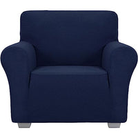 Jiviner Super Stretch Chair Slipcovers With Arms 1-Piece Jacquard Small Checks Living Room Armchair Covers Soft Anti Slip Sofa Couch Furniture Protector For Kids Pets (Navy Blue, Chair)