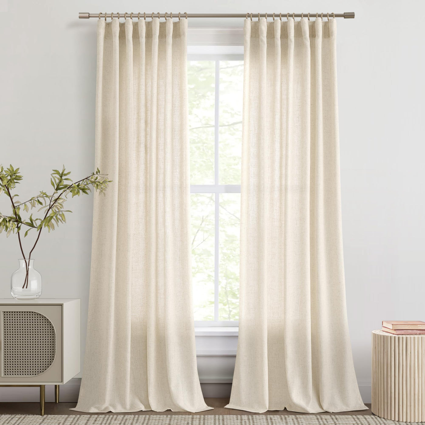 Joywell Beige Linen Curtains 84 Inches Long For Living Room 2 Panels Earthy Tan Burlap Flax Linen Drapes Semi Sheer Privacy Country Rustic Modern Farmhouse Neutral Curtain For Bedroom 84 Inch