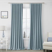 Joywell Blue Linen 100% Blackout Curtains 102 Inches Long, Rod Pocket,Back Tab,Hook Belt,Thermal Insulated Pinch Pleated Window Drapes Noise Cancelling For Bedroom Living Room(2 Panels,52 X 102)