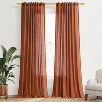 Joywell Hook Belt Linen Semi Sheer Curtains Inches Length Long Rod Pocket/Back Tab/Hook Belt/Clip Rings Window Curtains Drapes For Bedroom Living Room 2 Panels Set,52X120,Terracotta