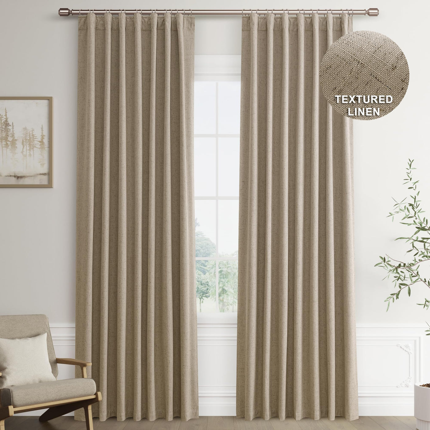 Joywell Khaki Linen 100% Blackout Curtains 84 Inch Long, Rod Pocket/Back Tab/Hook Belt/Clip Rings,Thermal Insulated Drapes For Bedroom Living Room With Hooks,2 Panels,52 X 84