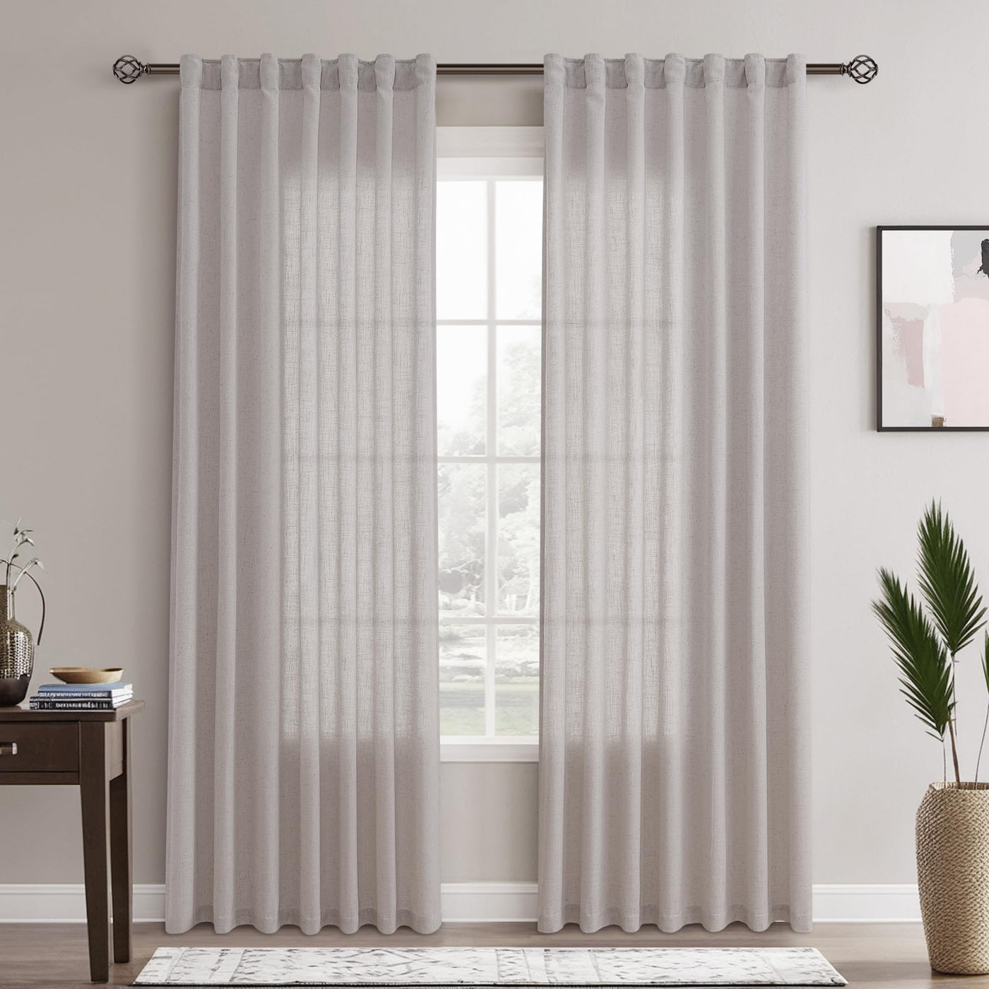 Joywell Light Beige Linen Semi Sheer Curtains 84 Inches Length Long Rod Pocket Back Tab Hook Belt Clip Rings Window Curtains Drapes For Bedroom Living Room 2 Panels 52X84