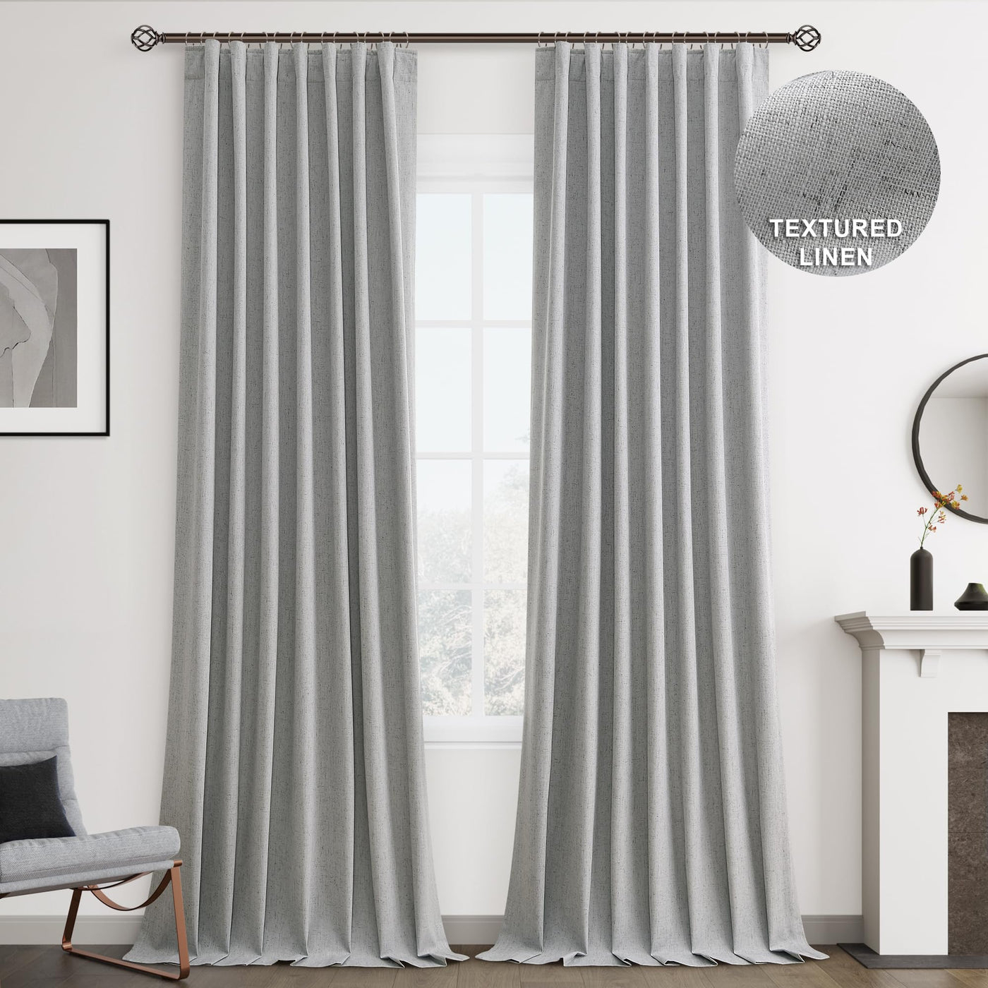 Joywell Silver Grey Linen 100% Blackout Curtains 108 Inch Long, Rod Pocket/Back Tab/Hook Belt/Clip Rings,Thermal Insulated Drapes For Bedroom Living Room With Hooks,2 Panels,52 X 108