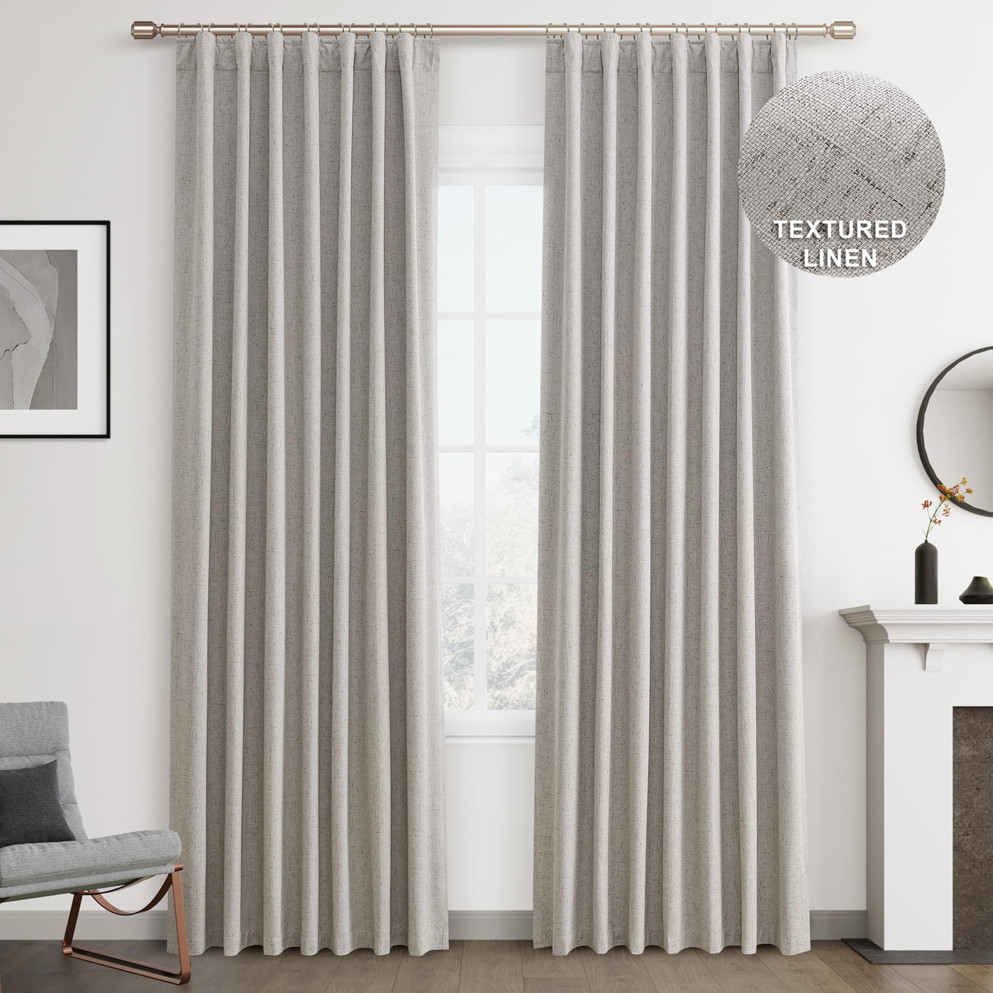 Joywell Silver Linen 100% Blackout Curtains 84 Inch Long, Rod Pocket/Back Tab/Hook Belt/Clip Rings,Thermal Insulated Drapes For Bedroom Living Room With Hooks,2 Panels,52 X 84