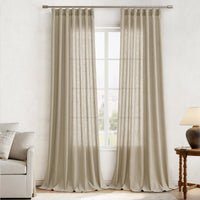 Joywell Tan Hook Belt Linen Semi Sheer Curtains 84 Inches Length Long Rod Pocket Back Tab Hook Belt Clip Rings Window Curtains Drapes For Bedroom Living Room 2 Panels 52X84