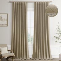Joywell Yellowish Brown Linen 100% Blackout Curtains 108 Inch Long, Rod Pocket/Back Tab/Hook Belt/Clip Rings,Thermal Insulated Drapes For Bedroom Living Room With Hooks,2 Panels,52 X 108