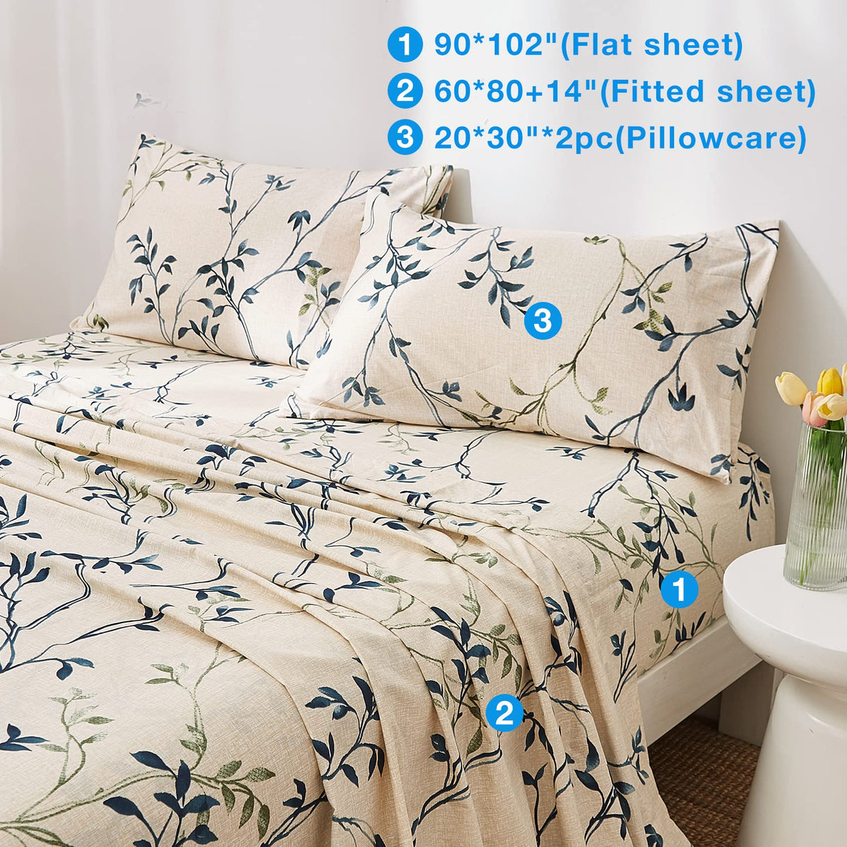 Jsd 4 Piece Leaves Printed Sheet Set King Size, Soft Summer Leaf Pattern Microfiber Bed Sheets Extra Deep Pocket