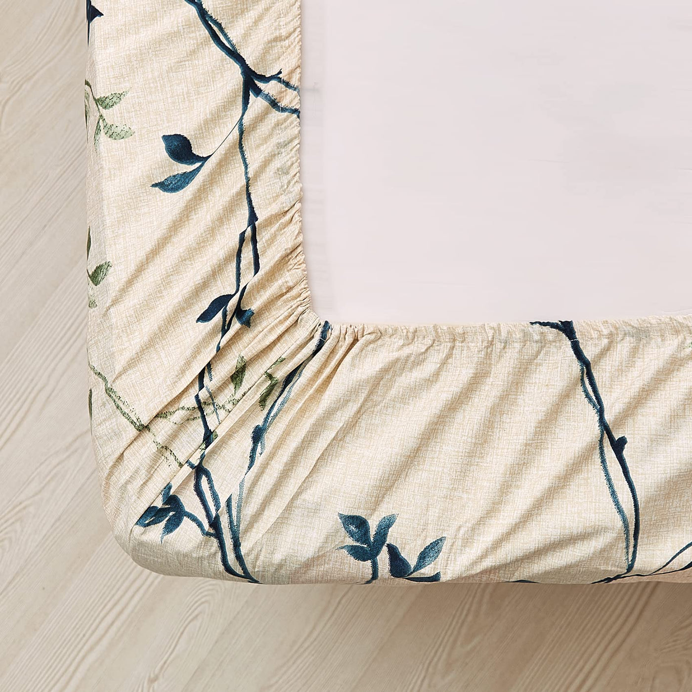 Q: What mattress sizes are compatible with the fitted sheet?A: The fitted sheet in the JSD Leaves Printed Sheet Set is designed to fit mattresses up to 15 inches thick, ensuring a snug and secure fit without slipping off during the night.