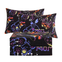 Jsd Black Gamer Sheet Set Full Size, 4 Piece Soft Kids Printed Microfiber Bed Sheets Deep Pocket