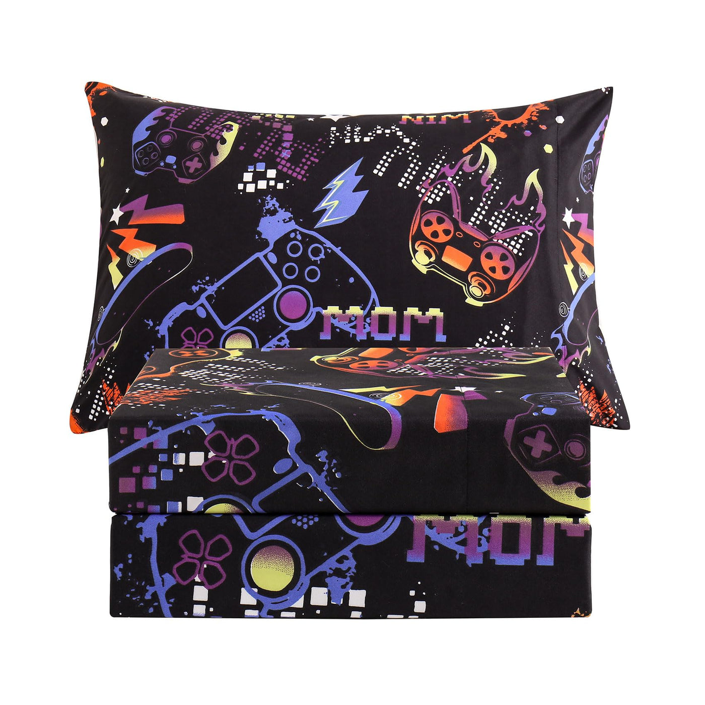 Jsd Black Gamer Sheet Set Twin Size, 3 Piece Soft Kids Gaming Printed Microfiber Bed Sheets Deep Pocket