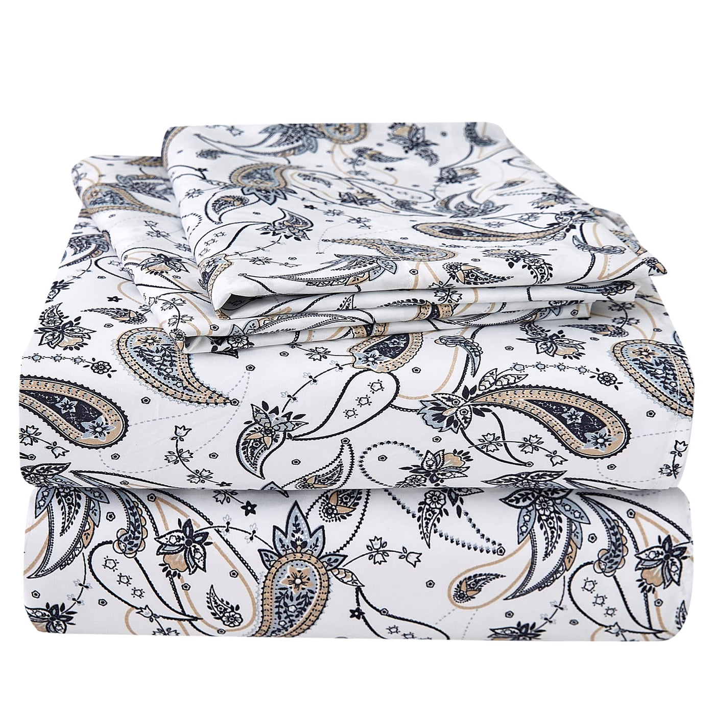 Jsd Grey Paisley Printed Sheet Set Full Size, 4 Piece Soft Retro Pattern Microfiber Sheets Extra Deep Pocket