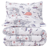 Jsd Mermaid Full Comforter Set For Girls, 3 Piece Ocean Theme Microfiber Comforter With Pillow Shams, Lightweight All Season Was
