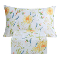Jsd Yellow Floral Printed Sheet Set Twin Size, 3 Piece Soft Botanical Microfiber Bedding Sheets Extra Deep Pocket