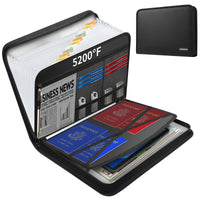 Why Do We Need Fireproof Expanding File Organizer? Fire Is A Terrible And Destructive Force.Even With The Best Firefighting Techniques,You May Suffer Irreparable Damage Before The Fire Is Put Out,But There Are Things We Can Do To Prepare To Protect Our Valubles. Outstanding Fireproof Performance: Different Than Most On The Market,Jundun Upgraded Expandable Folder Use 8 Layers Of Fireproof Material:Fireproof Non-Itchy Silicone + Fireproof Glass Fiber + Aluminum Foil,Which Can Block The Rapid Transfer Of Heat. But Fireproof Also Doesn'T Mean It Can Support Endless Fire,Please Try To Minimize The Time Of Being Burned And Remove From The Fire In The Shortest Time. Also Has A Waterproof Performance That Exceeds 90% Of Similar Products: The Documents Organizer Is Made Of Non-Itchy Waterproof Silicone Waterproof Zipper,Which Can Avoid Water Ingress Caused By Unexpected Water Stains. However,Zippers Do Not Remain 100% Waterproof For Long,So Please Do Not Completely Submerge This Document Binder In Water For Long Periods Of Time.