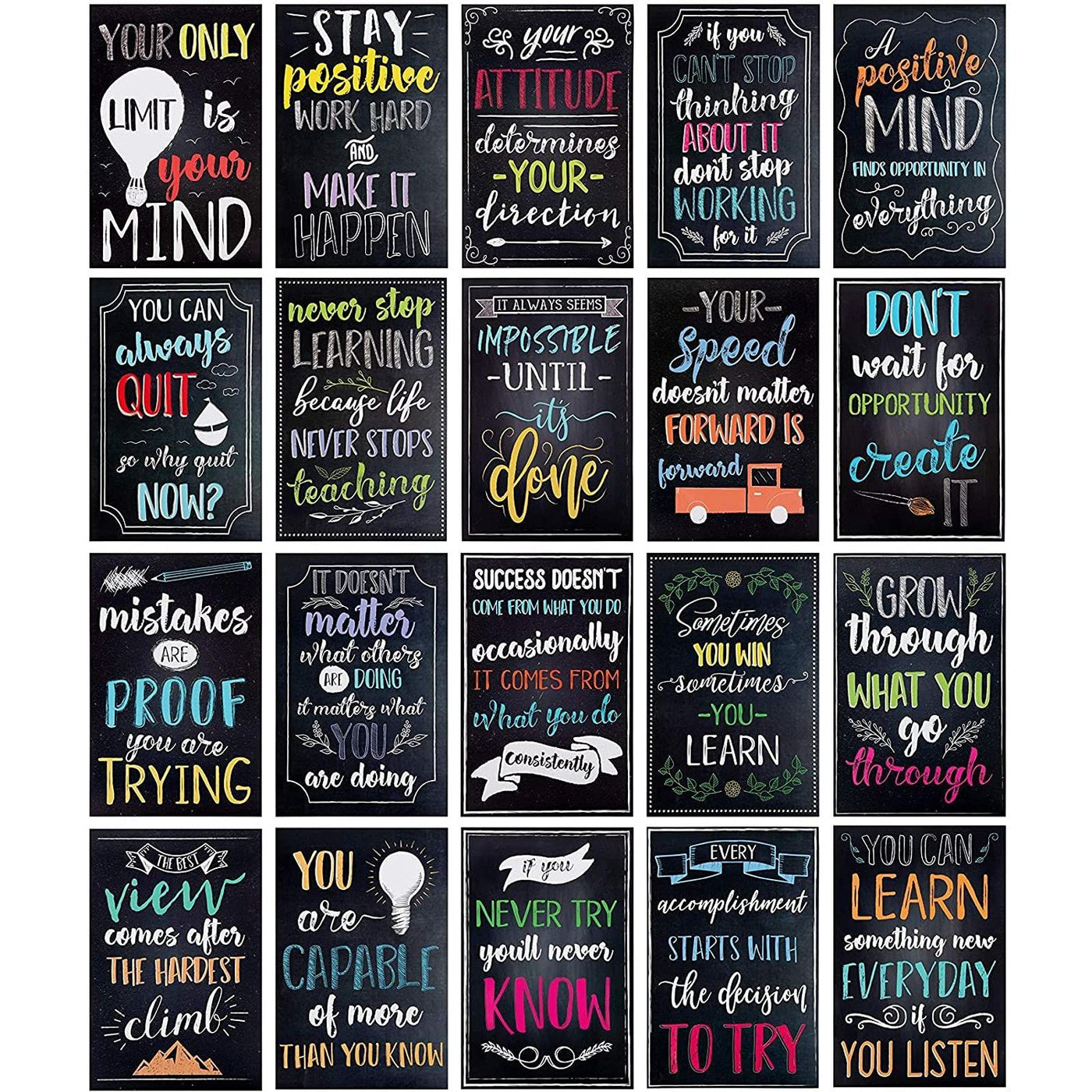 Juvale 20 Pack Motivational Posters With Positive Quotes For Middle And High School Classrooms, Bulletin Boards, And Gifts, Insp