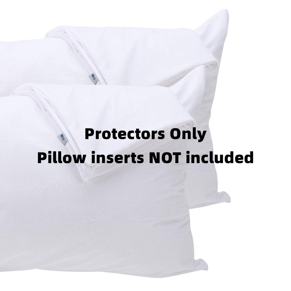 Kingnex 4 Pack Feather Proof Pillow Protectors With Zipper Standard Size - Waterproof - Down Proof - Bamboo Viscose Terry Surfac