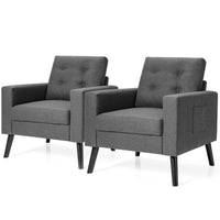 Kotek Accent Chairs Set Of 2, Button Tufted Living Room Chair W/Rubber Wood Legs, Side Pockets, Mid Century Modern Single Sofa Club Chair, Linen Fabric Upholstered Armchair (Grey)