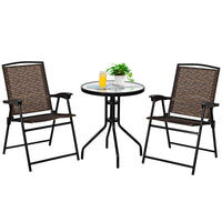 Kotek Patio Bistro Set, 3 Piece Outdoor Furniture Set W/Round Table & 2 Folding Chairs, Tempered Glass Tabletop, Bistro Table And Chairs For Balcony, Porch, Courtyard, Brown