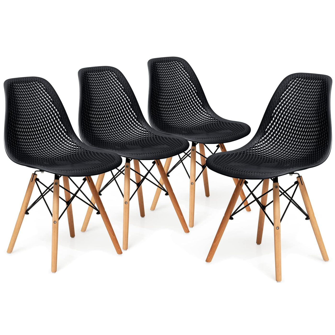 Kotek Set Of 4 Dining Chairs, Dsw Molded Shell Plastic Side Chairs With Mesh Design, Solid Wood Legs, Mid-Century Modern Armless Side Chairs For Kitchen, Dining Room, Living Room (Black)