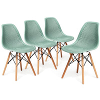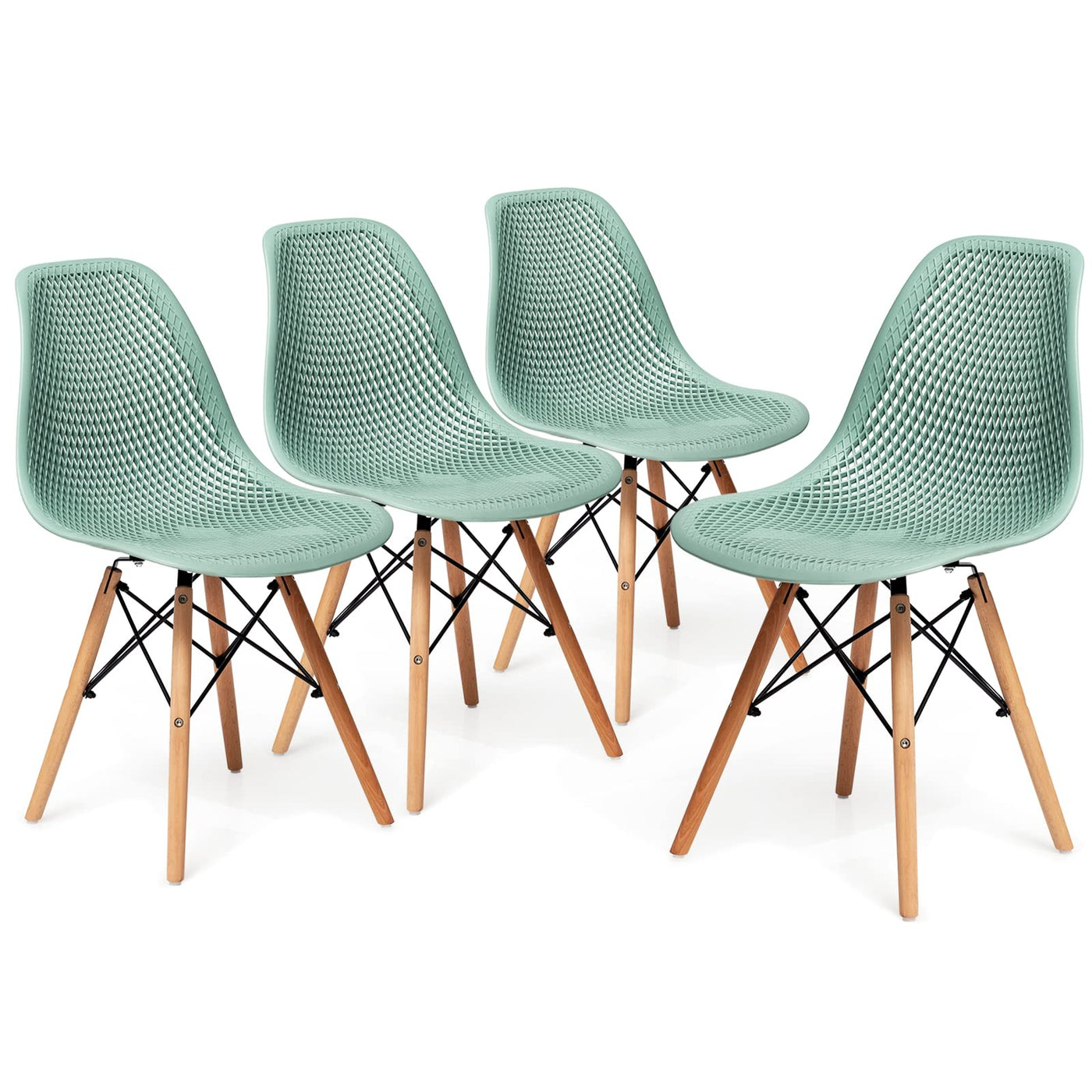 Kotek Set Of 4 Dining Chairs, Dsw Molded Shell Plastic Side Chairs With Mesh Design, Solid Wood Legs, Mid-Century Modern Armless Side Chairs For Kitchen, Dining Room, Living Room (Green)