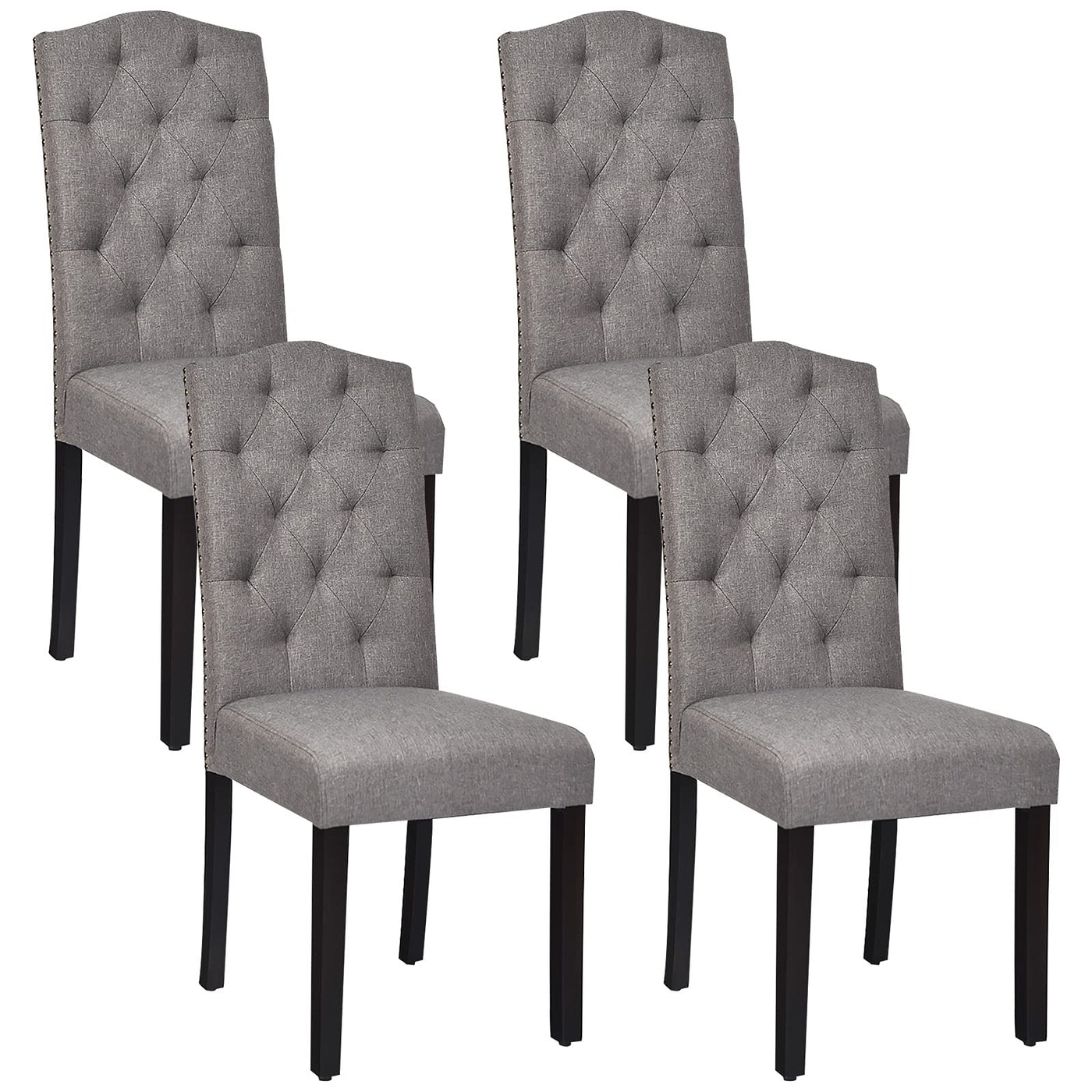 Kotek Upholstered Dining Chairs Set Of 4, Tufted Parson Chairs W/High Backrest, Solid Wood Legs, Modern Fabric Padded Side Chairs For Dining Room, Kitchen, Living Room (Grey)