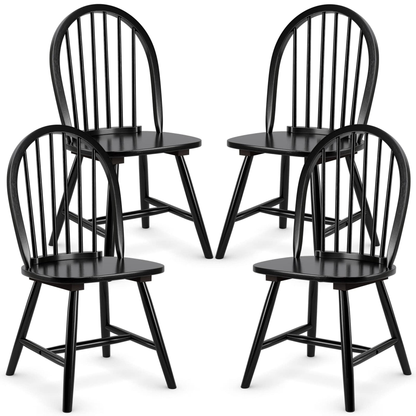 Kotek Wood Dining Chairs Set Of 4, Windsor Chairs With Spindle Back, Solid Wood Legs, Wide Seat, Farmhouse Armless Side Chairs For Living Room, Dining Room, Kitchen (Black)