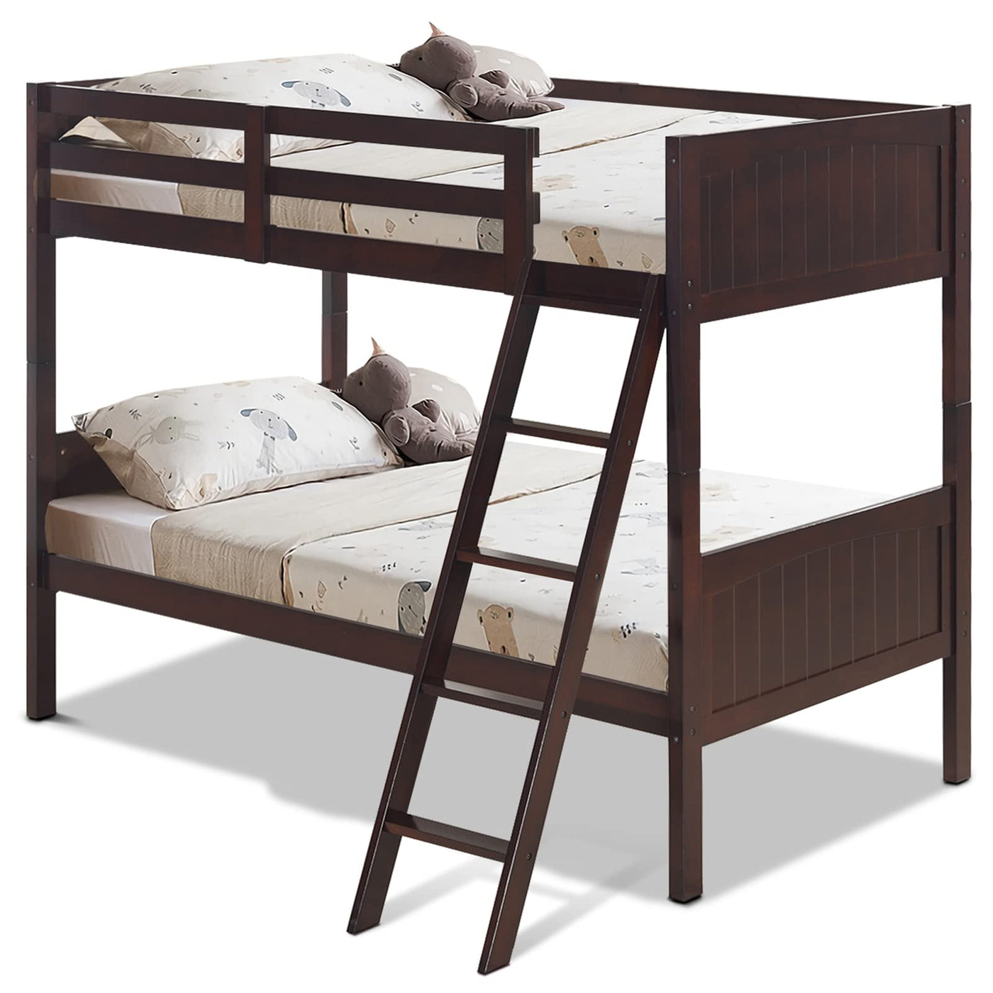 Kotek Wooden Twin Bunk Beds, Detachable Twin Over Twin Bunk Beds For Kids, Solid Rubberwood Bunk Bed With Ladder And Safety Rail (Espresso)