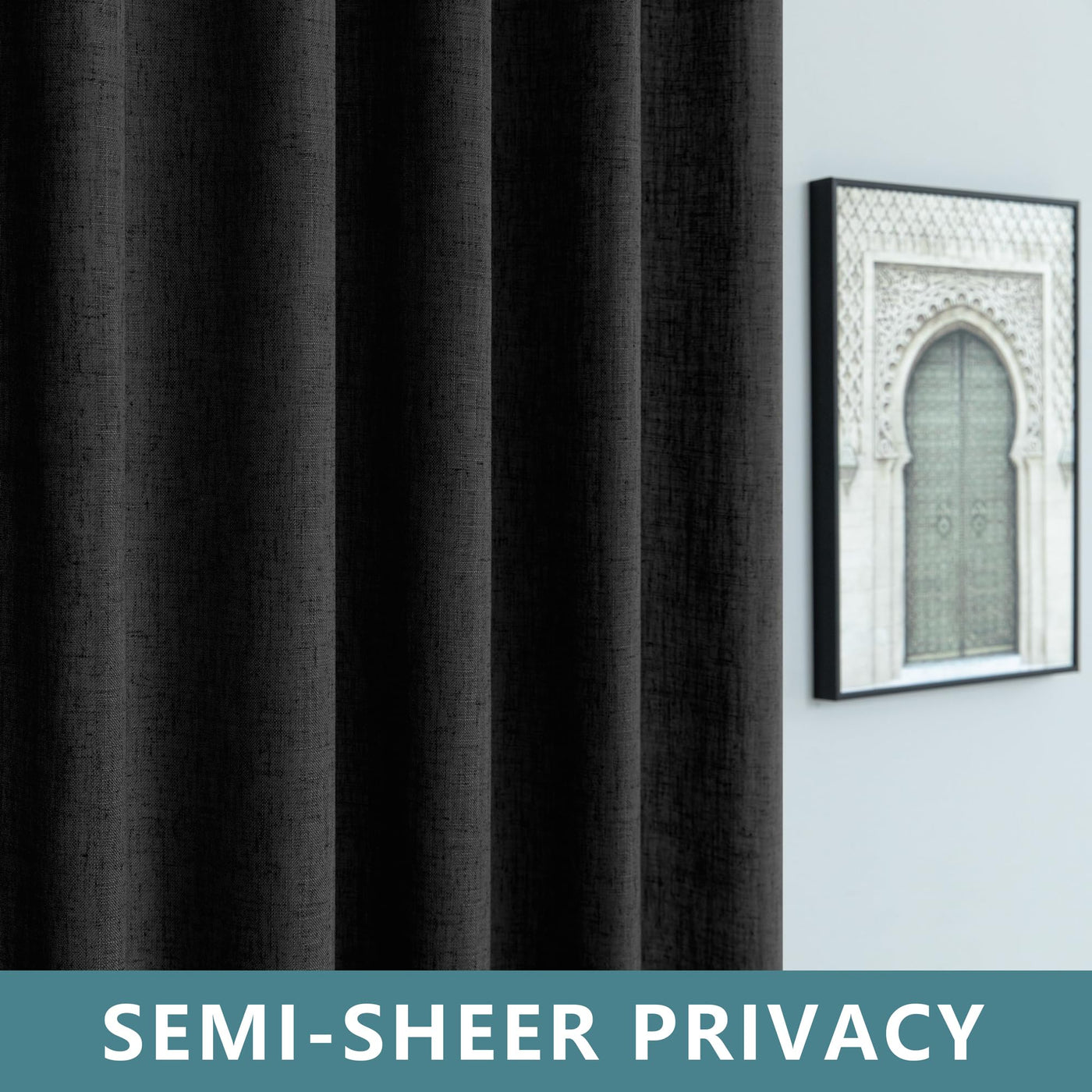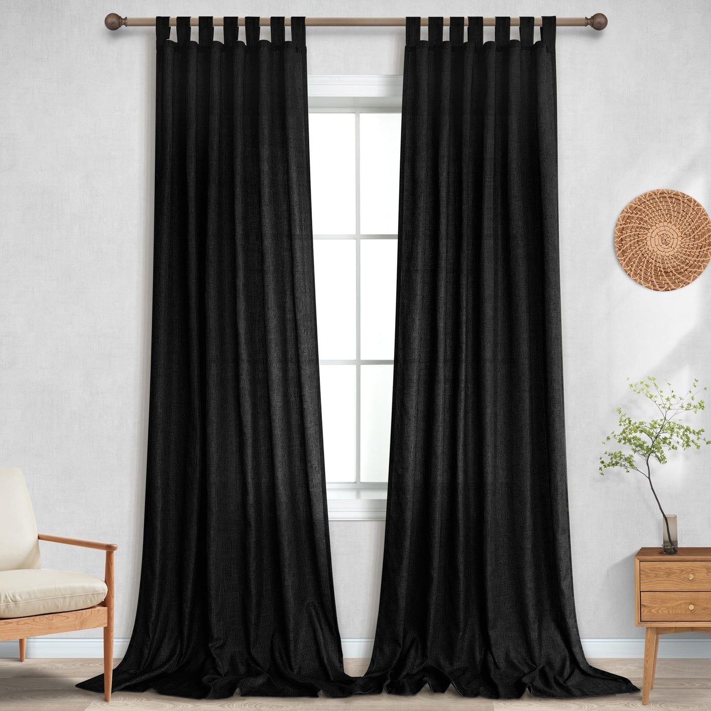 Koufall 52X108 Inch Length Black Tab Top Linen Blend Curtains For Living Room