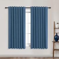 Koufall 52X54 Inches Long Denim Blue Back Tab Linen Blackout Curtains For Living Room