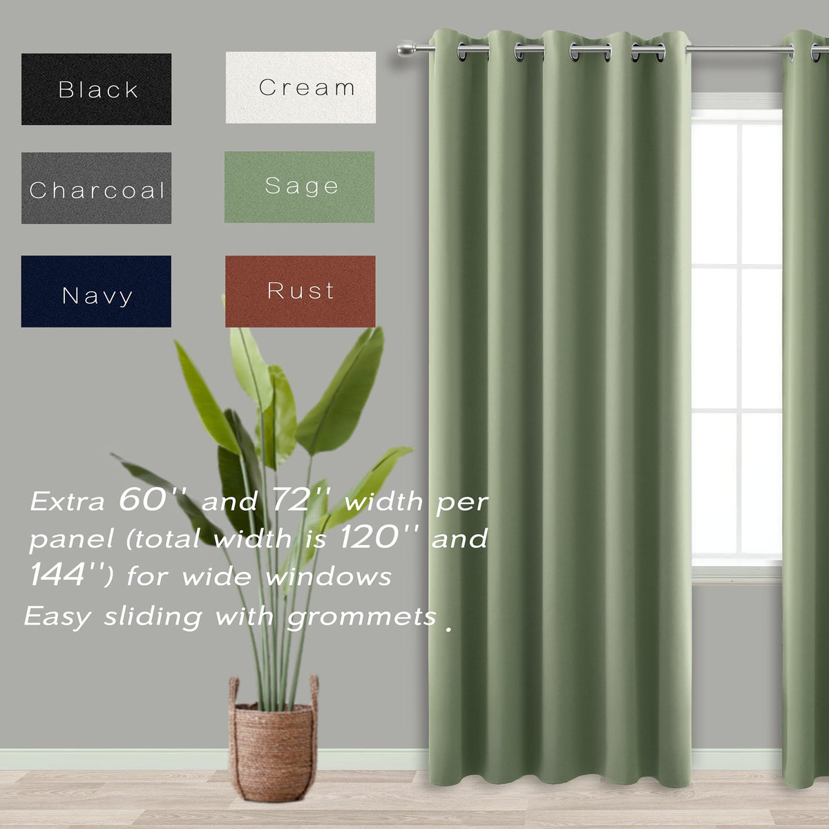 Koufall 72 Inch Wide Curtains For Bedroom,Extra Wide Blackout Heat Temperature Control Window Coverings For Kitchen,63 Inch Length,Sage Green