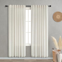 Q: What sizes of windows do these curtains fit?A: Each panel measures 40 inches in width, allowing the two-panel set to cover window widths of 48, 60, or 72 inches when pleated properly, making them versatile for various window sizes.