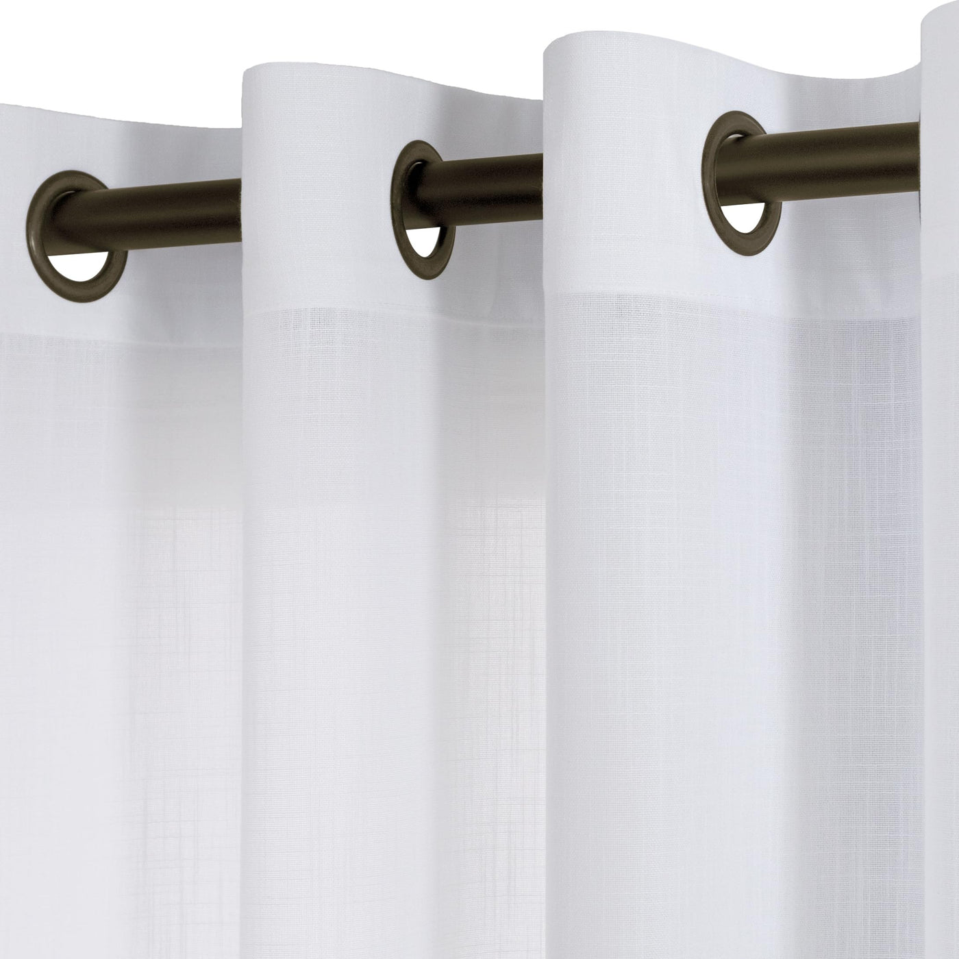 Koufall 90 Inch Length Bronze Grommet Linen White Curtains For Living Room,Semi Sheer Light Filtering Window Drapes For Bedroom,