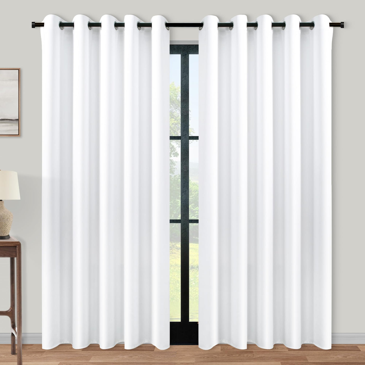 Koufall 96 Inch Curtains 2 Panel Set,Semi Blackout Extra Wide Living Room Curtains 96 Inches Long,With Grommet Top,White Color