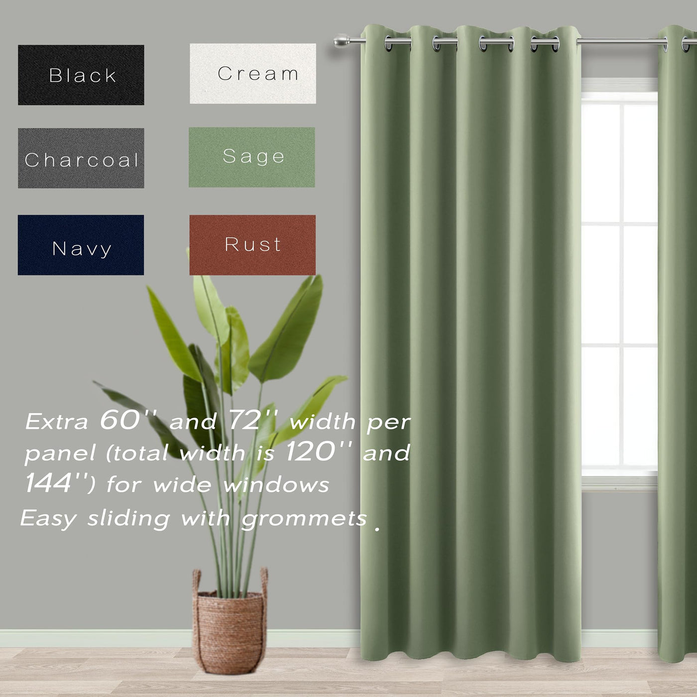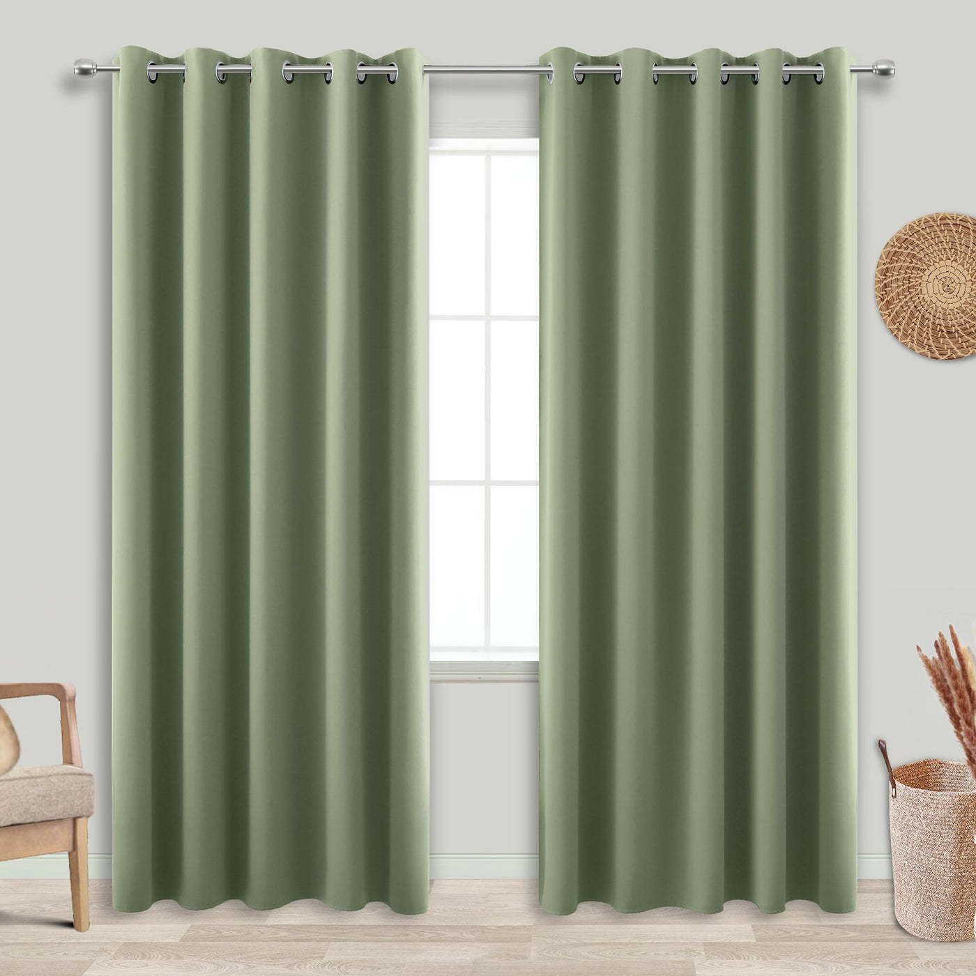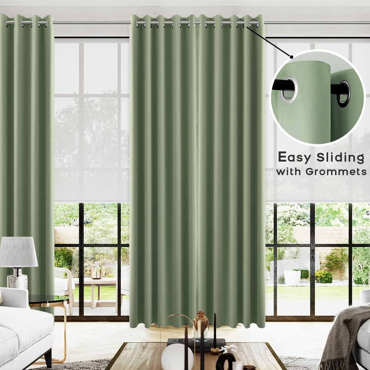 Koufall 96 Inch Long Curtains 2 Panel Set,Blackout Extra Wide Thermal Grommet Blacked Out Curtains For Bedroom,72 Inch Wide X 96 Inch Length,Sage Green