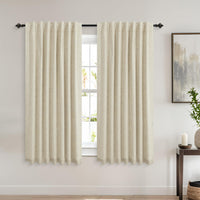 Koufall Back Tab Linen Blackout Curtains For Living Room-Light Tan-52X54