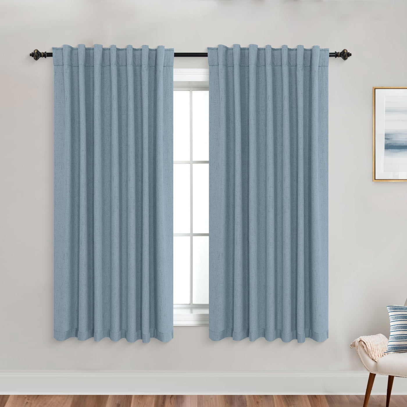Koufall Back Tab Linen Blackout Curtains For Living Room-Stone Blue-52X54