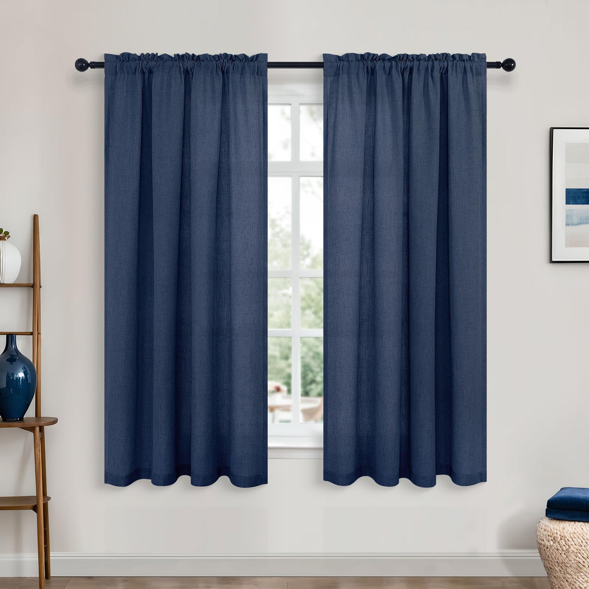 Koufall Bathroom Curtains Window 45 Inch Length,Navy Blue Sheer Linen Privacy Short Curtains For Bedroom Living Room Small Windows 45 Inches Long Nautical Decor 2 Panels Set,Dark Blue