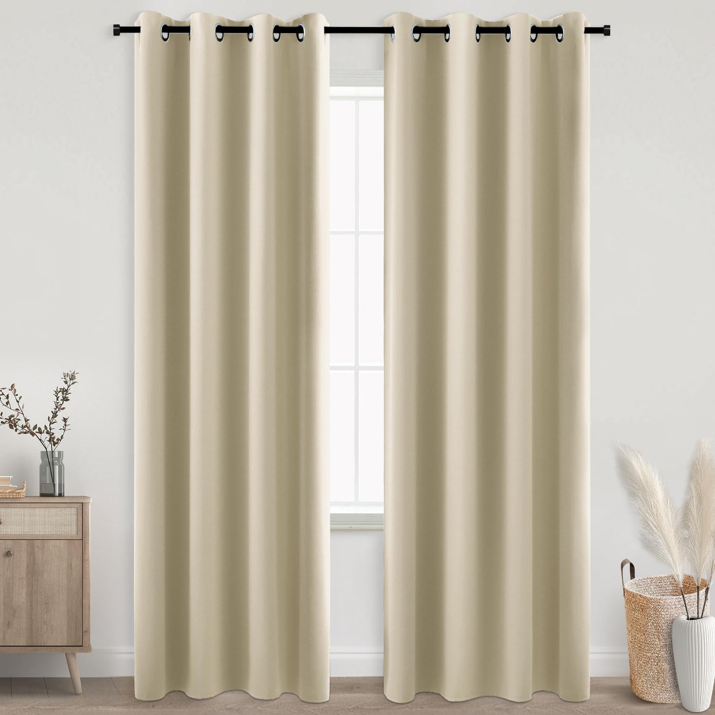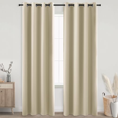 Koufall Beige Living Room Curtains 96 Inches Long,Blackout Grommet No Wrinkle Room Darkening Curtains For Bedroom 2 Panel Set 52X96 In Length