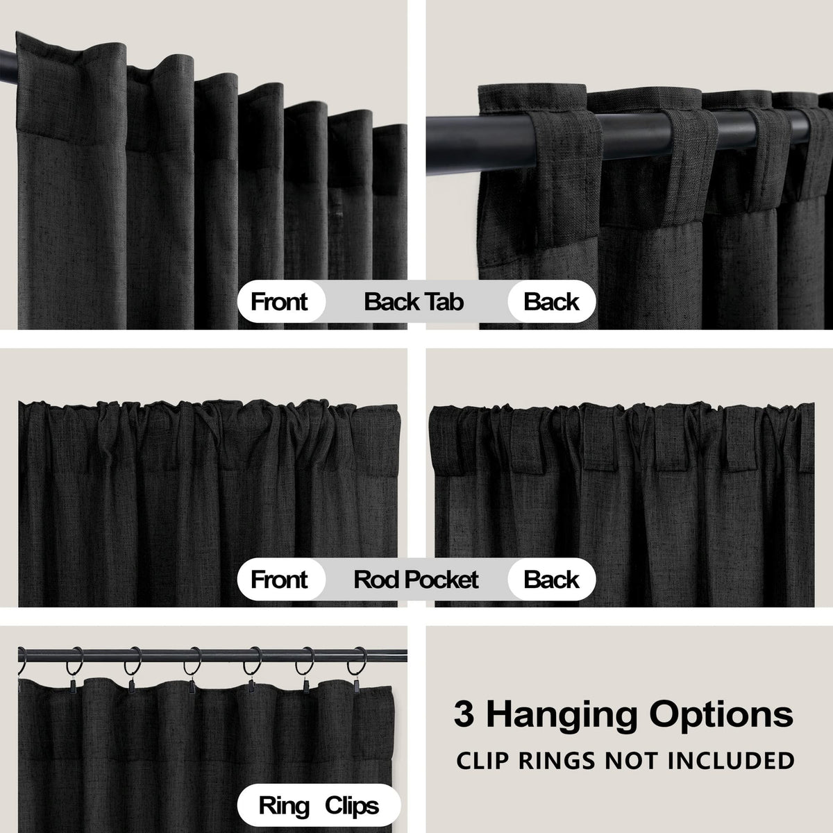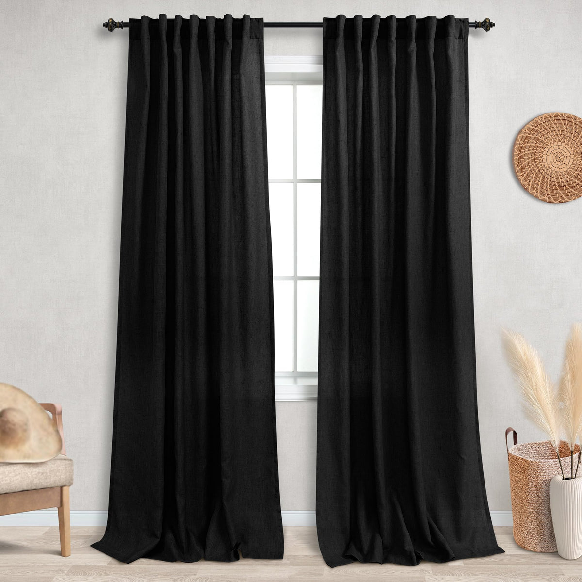 Koufall Black Back Tab Rod Pocket Linen Sheer Curtains For Living Room 52X90 Inches Long