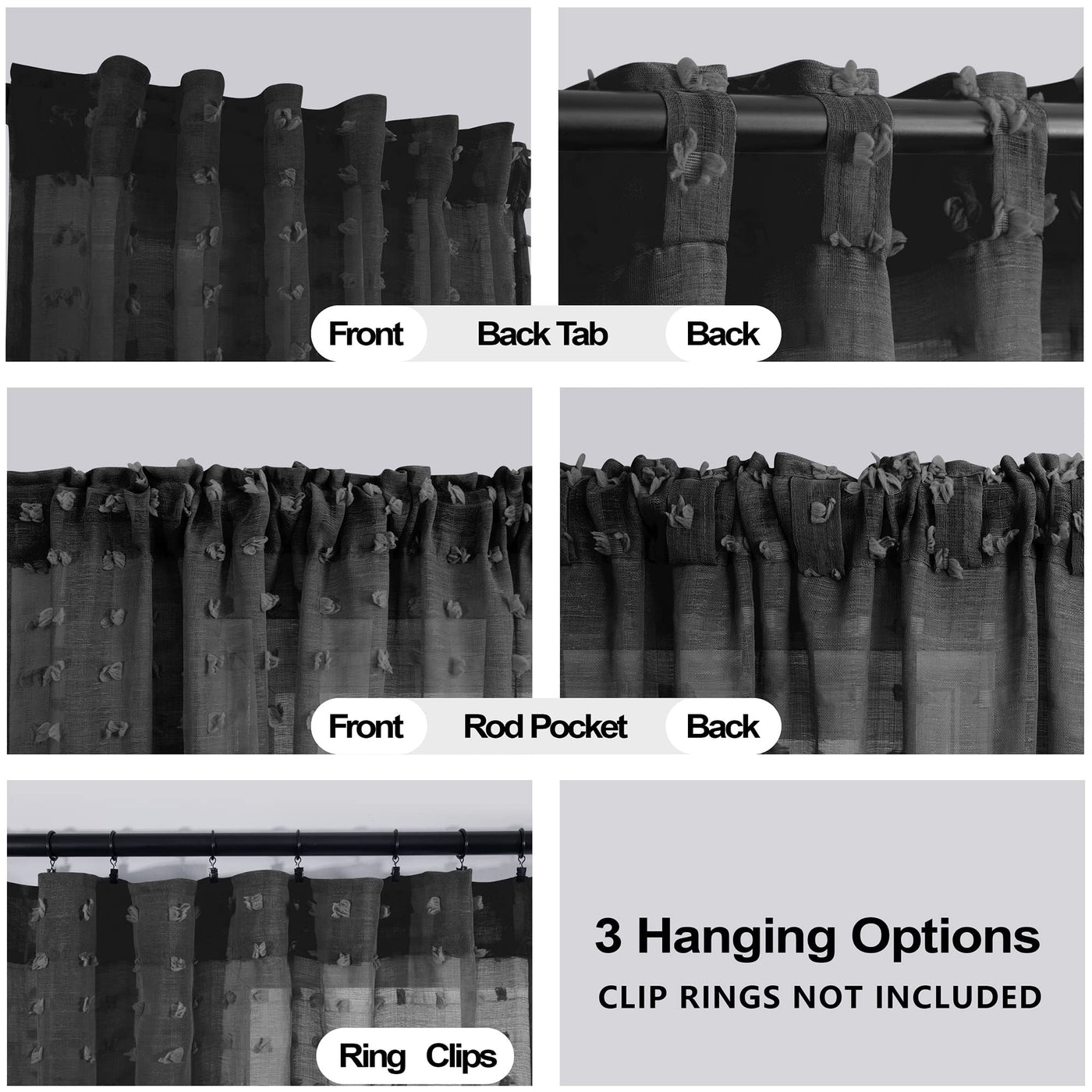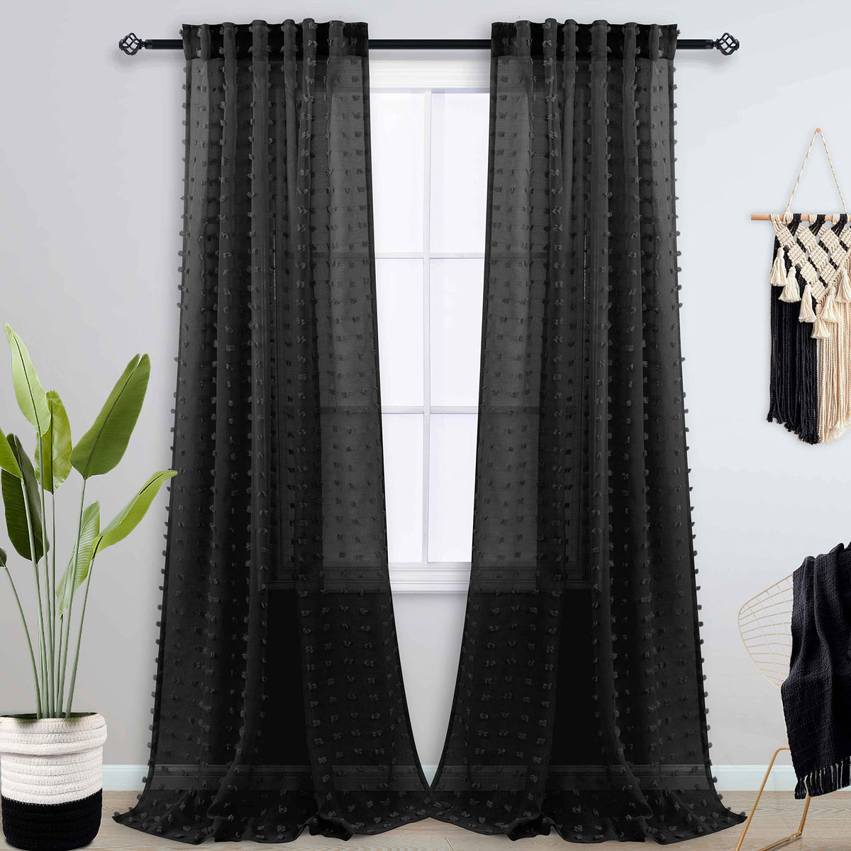 Koufall Black Curtains 102 Inches Long For Living Room 2 Panels Boho Semi Sheer Light Filtering Rod Pocket Window Drapes Pom Pom Tufted Textured Curtains For Bedroom Sliding Glass Door Large Window
