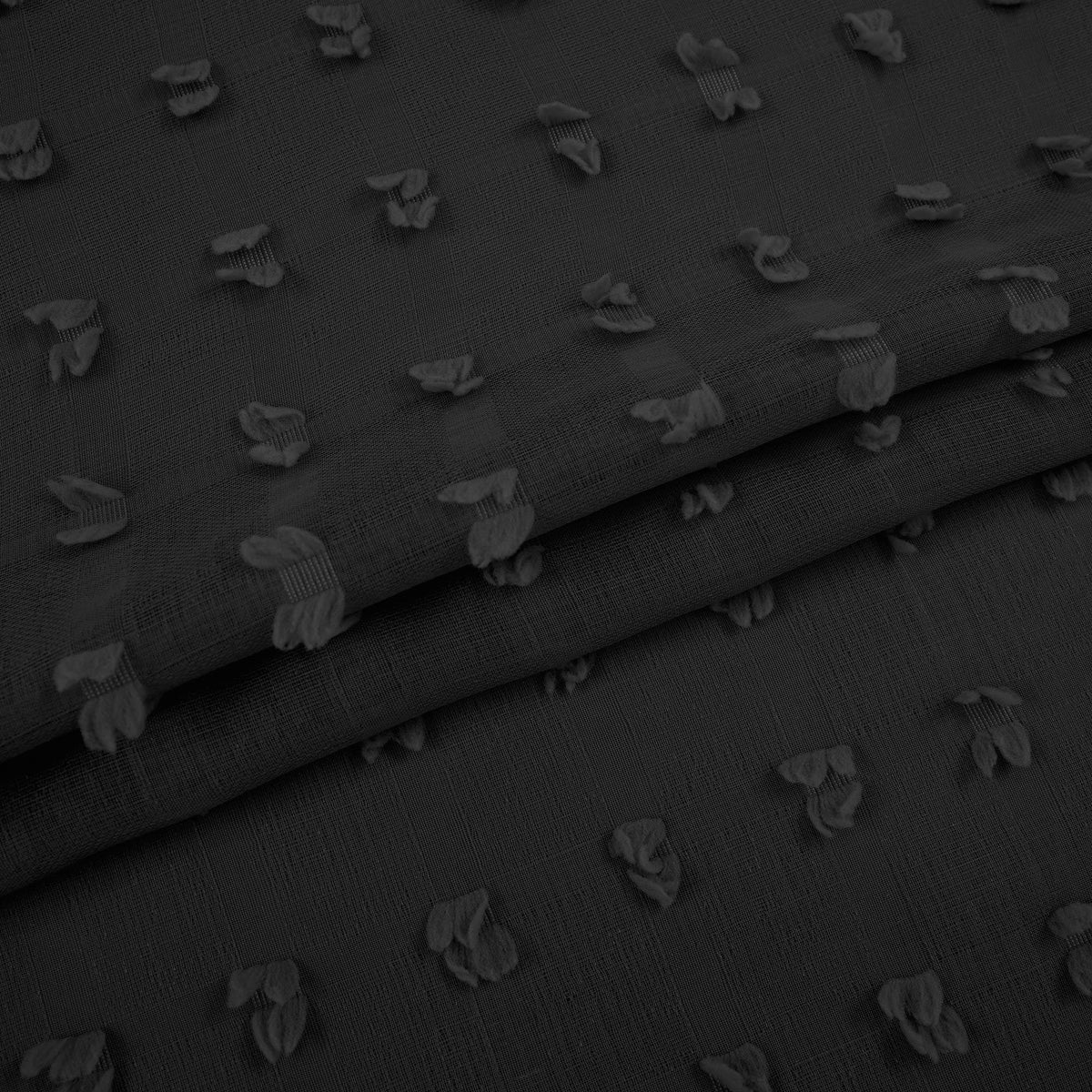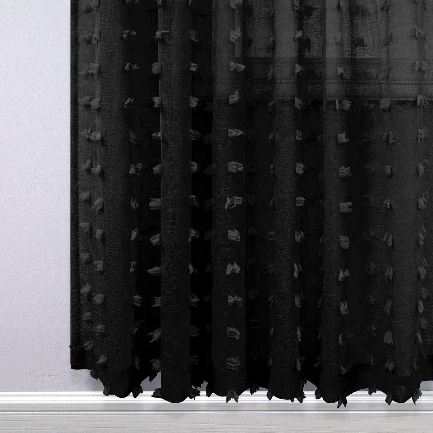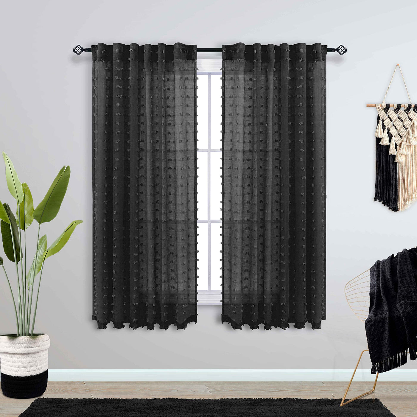 Koufall Black Curtains 45 Inch Length For Kitchen Window,Rod Pocket Pom Pom Textured Boho Lace Sheer Curtains For Bathroom Window