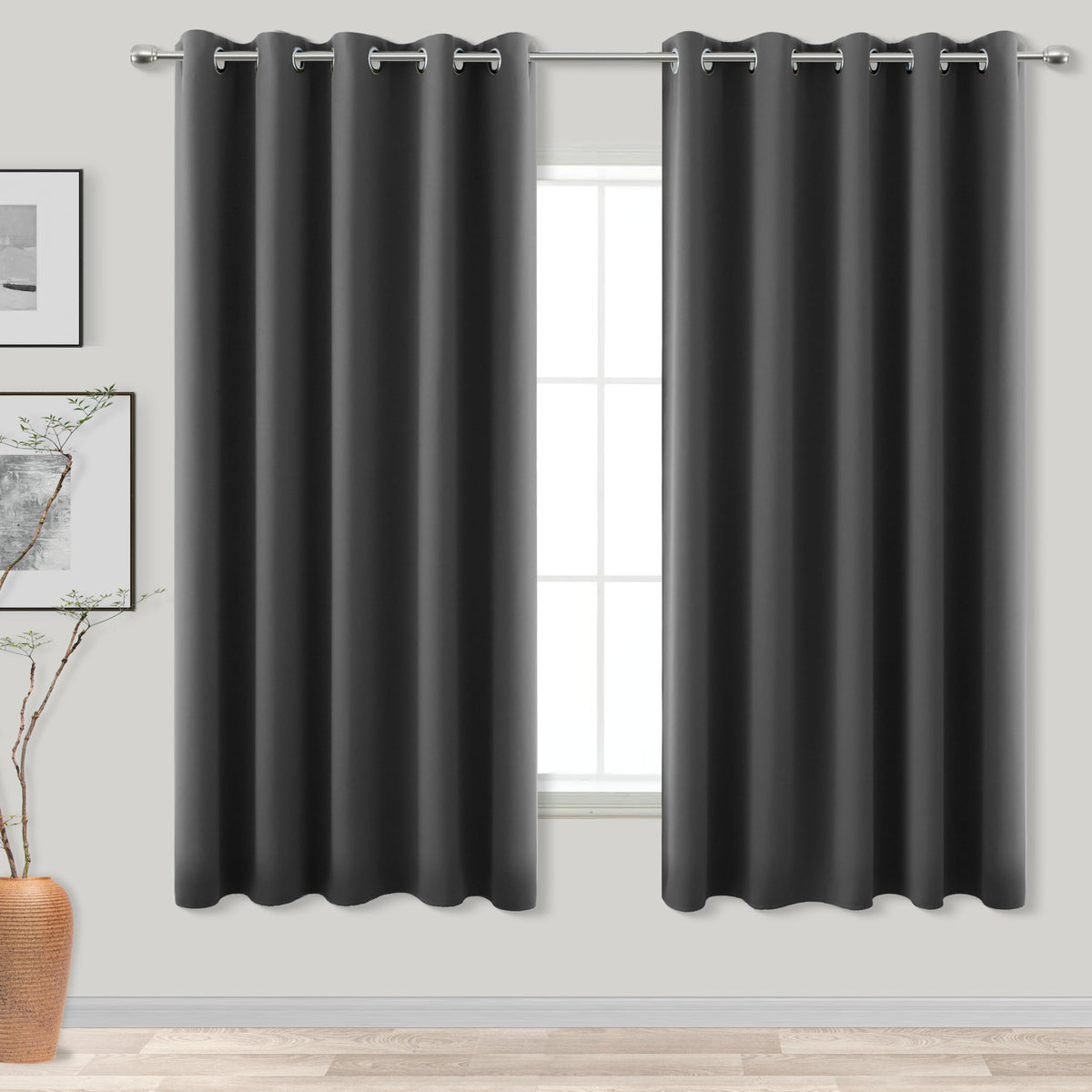 Koufall Blackout Curtains For Living Room 63 Inch Length,Extra Wide 72 Inches Dark Gray Drapes 63 Inches Long 2 Panels Set,