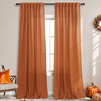 Koufall Burnt Orange Back Tab Rod Pocket Linen Sheer Curtains For Living Room 52 By108 Inch Length