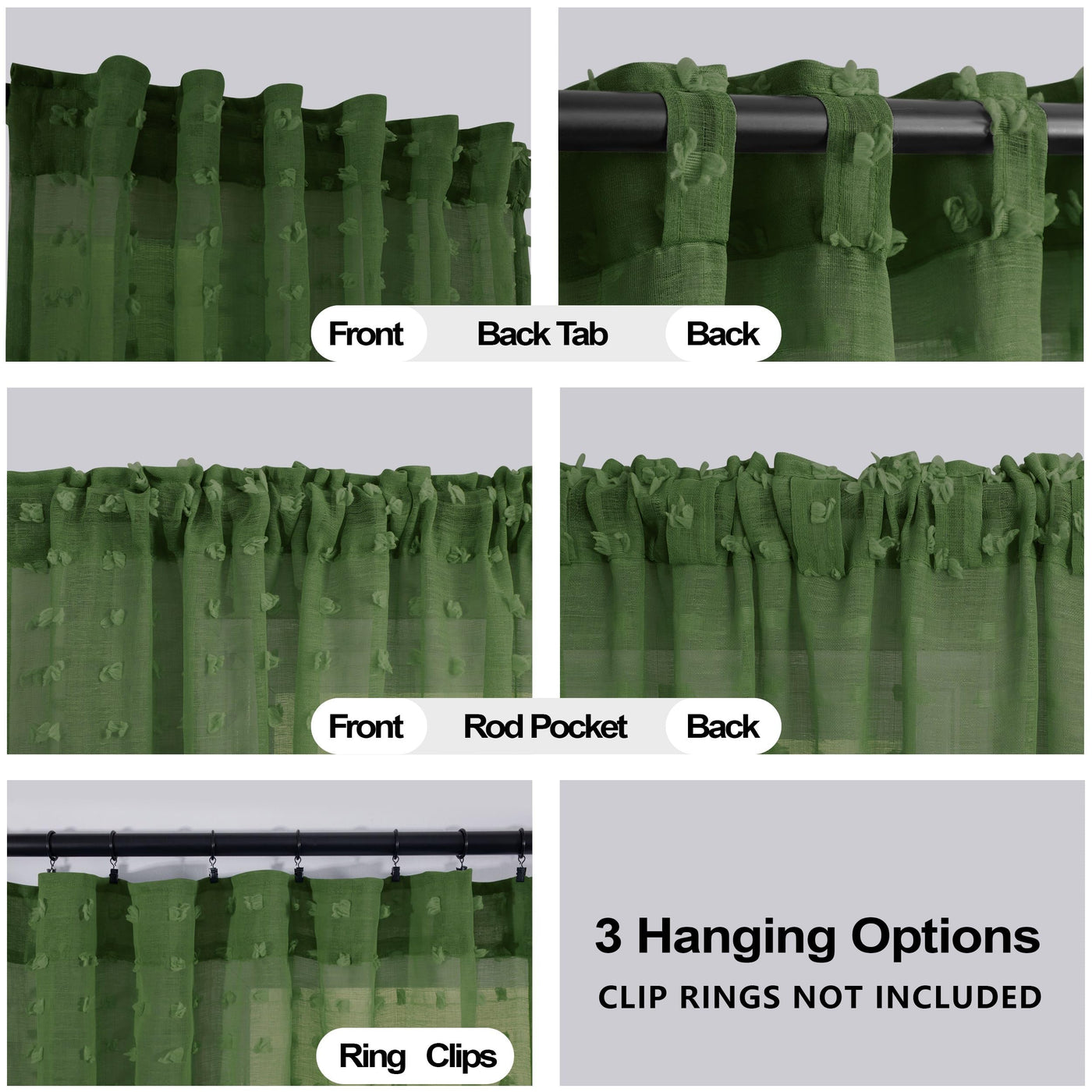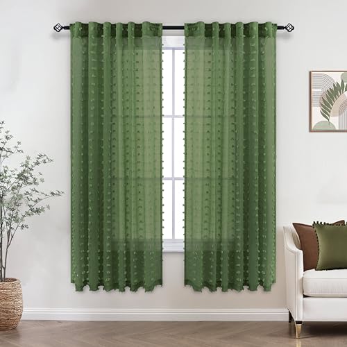 Koufall Dark Green Curtains 63 Inch Length For Living Room,Sheer Curtains For Bedroom 63 Inches Long,Olive Green