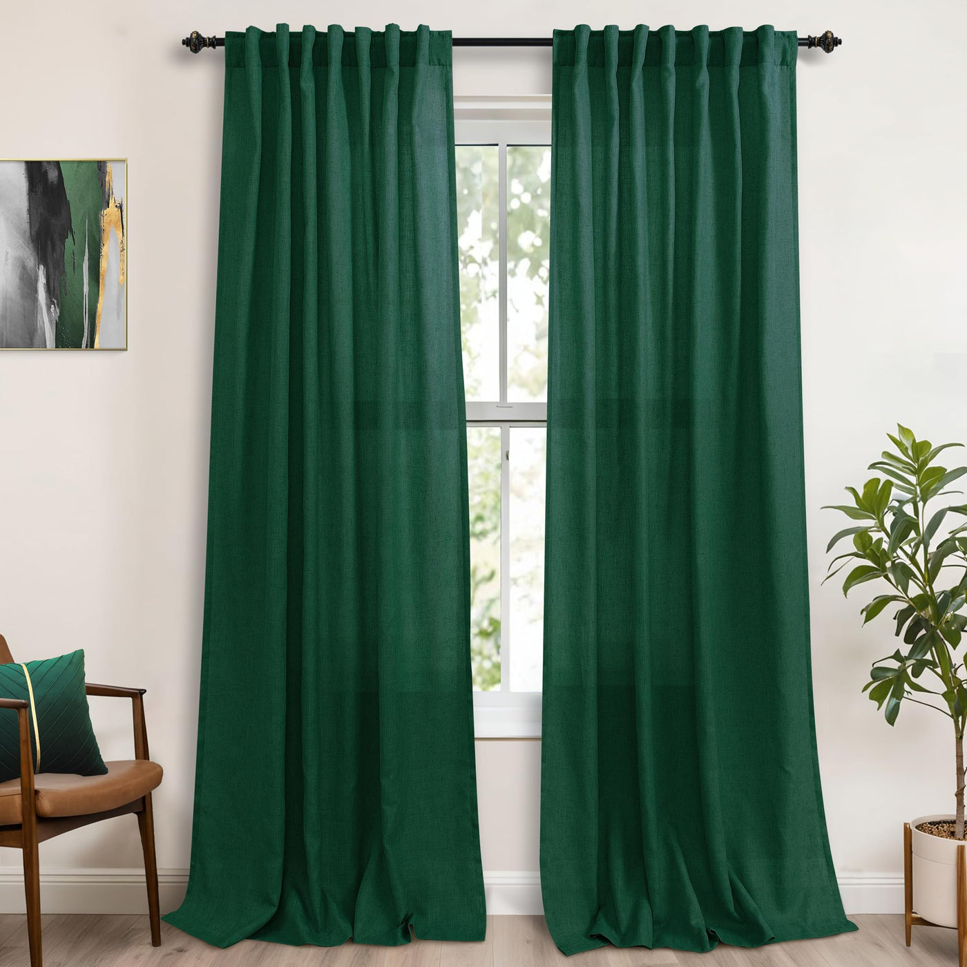Koufall Dark Green Curtains 96 Inches Long 2 Panels Set,Back Tab Linen Semi Sheer Curtains 96 Inch Length For Living Room Bedroo