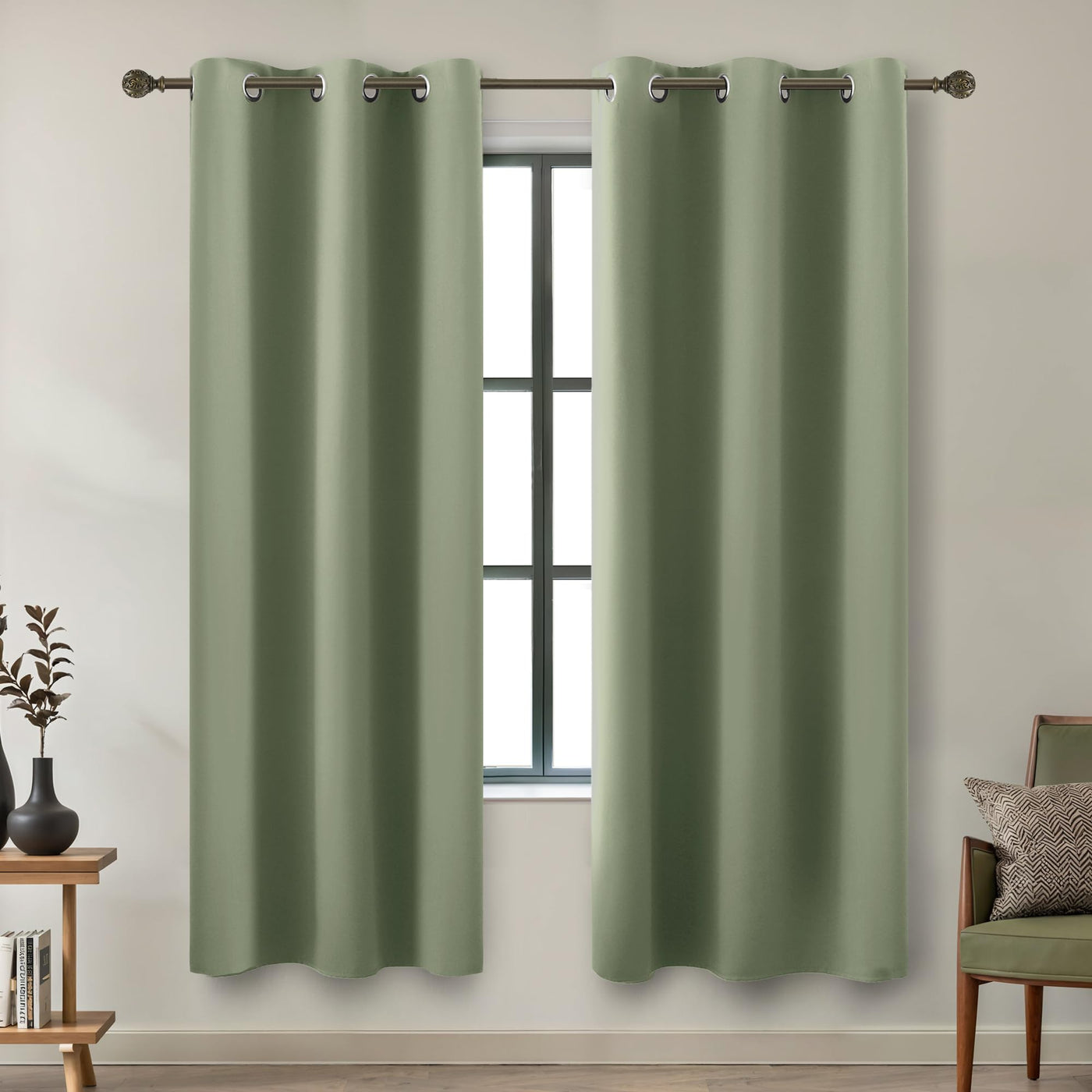 Koufall Dark Sage Green Boho Blackout Curtains 72 Inch Length For Bedroom 2 Panels Set Home Office Organic Decor Grommet Thermal Room Darkening Living Room Window Black Out Curtains 72 Inch Long