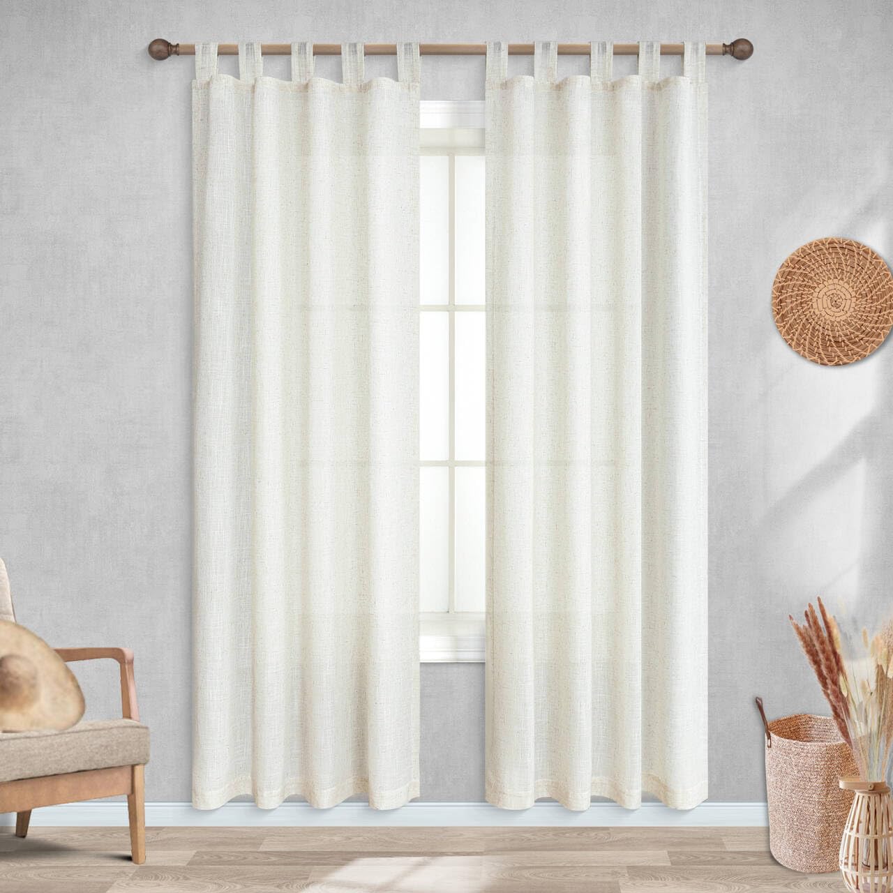 Koufall Door Curtain For Doorways,Tab Top Privacy Boho Sheer Linen Doorway Curtains,78 Inch Long,Cream