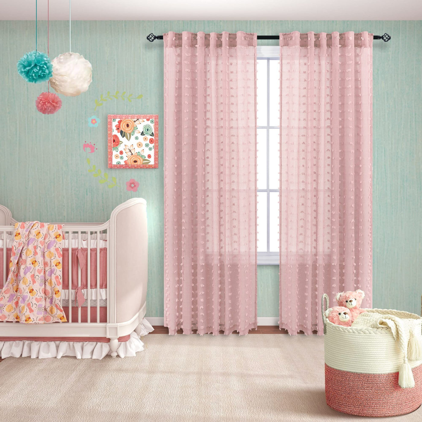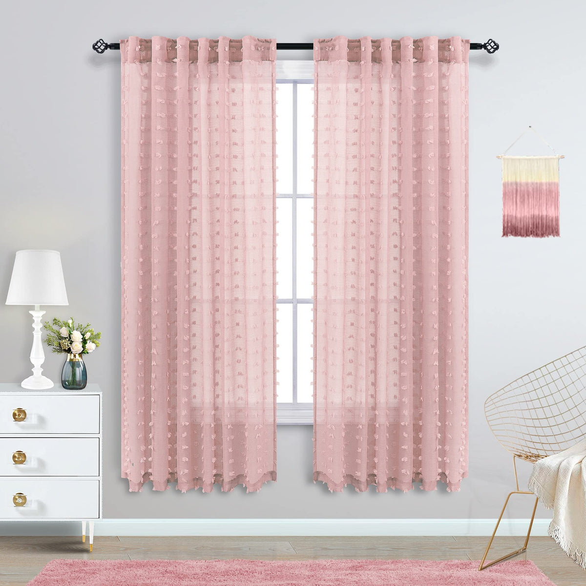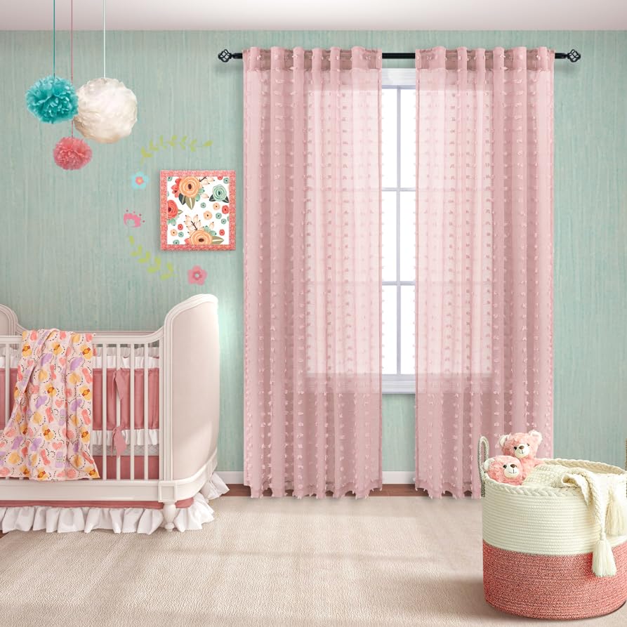 Koufall Dusty Pink Nursery Curtains For Baby Girls Bedroom Decor Boho Pom Pom Sheer Curtain For Kids Room 63 Inch Length 2 Panels
