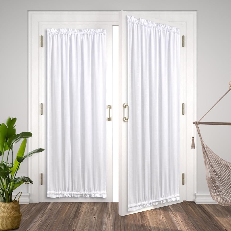 Koufall French Door Curtains,Front Door Curtains For Glass Window Set 2 Panels,White Linen Sheer Curtain 72 Inches Long For Skinny Sidelight Side Light Double Windows,25 X 72